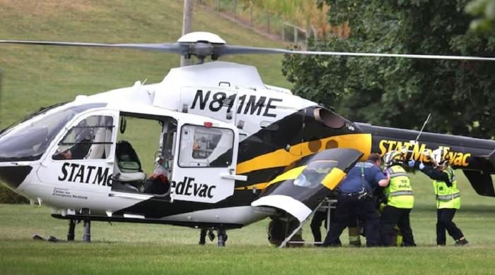 A police officer is loaded into a Medevac helicopter after a shooting incident in York County’s North Codorus Township, Pennsylvania, US, September 17, 2025.— Reuters