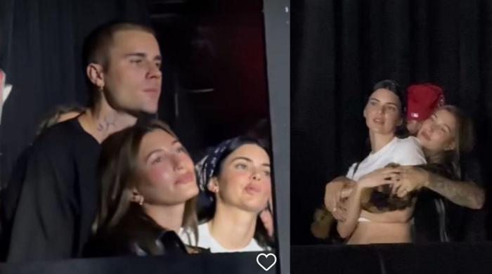 Justin Bieber enjoys flirty energy with Hailey and Kendall during concert