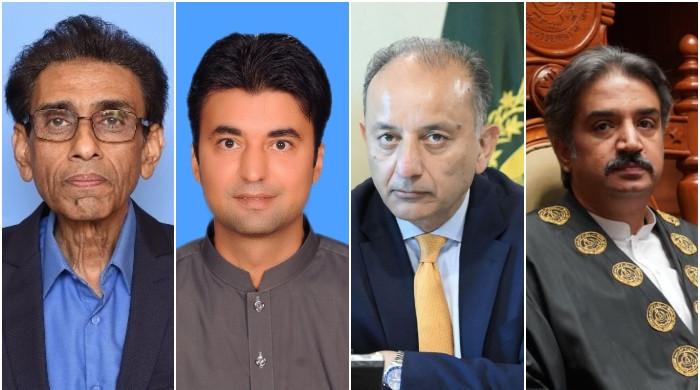 This collage shows from left to right MQM-P Chairman Khalid Maqbool Siddiqui, PTI Senator Murad Saeed, Federal Minister for Climate Change Dr Musadik Malik and Sindh Assembly Speaker Syed Awais Qadir Shah. — National Assembly of Pakistan/Minstry of Climate…