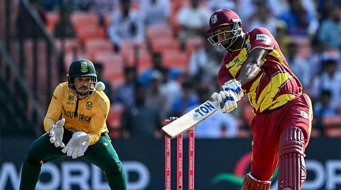 West Indies’ Romario Shepherd plays a shot as South Africa’s wicketkeeper Quinton de Kock watches during the 2026 ICC Men’s T20 Cricket World Cup Super Eights match between West Indies and South Africa at Narendra Modi Stadium in Ahmedabad on February 26, 2026. — AFP